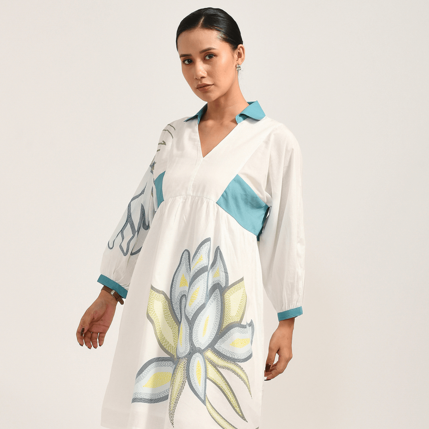 Classic Contrast Floral Cotton Dress